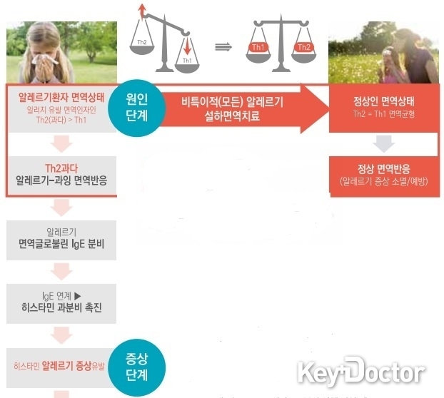 알레르기 반응에 관여하는 면역 세포들로 하여금 항원에 대한 반응을 약화시킴으로써 면역학적 관용(immune